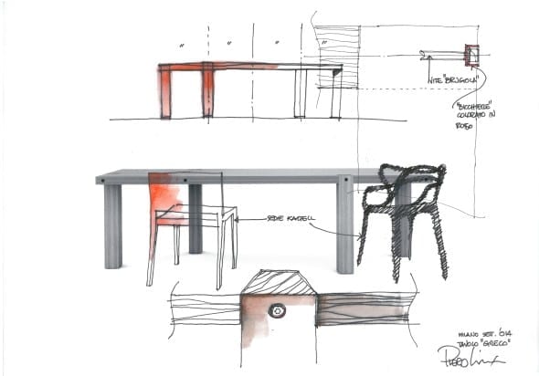 Alla progettazione dei tavoli hanno lavorato alcuni degli autori più illustri del design e dell’architettura internazionale: Mario Bellini, Pierluigi Cerri, Aldo Cibic, Antonio Citterio, Michele De Lucchi, Giulio Iacchetti, Piero Lissoni, Alessandro Mendini, Fabio Novembre, Franco Origoni, Italo Rota e Patricia Urquiola.
