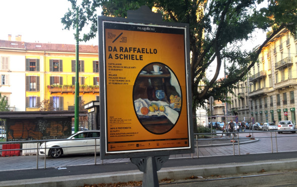 “Da Raffaello a Cézanne” con un’algida faccina ammiccante e sensuale (quanto spietata) della Salomé di Cranach (e appena lì sotto al cartellone immaginiamo scorrere fiumi di catene dorate e sangue di testa decollata del Battista). Incidenti, tamponamenti a catena, sterzate clamorose. Goldin è a Milano?!?! Chi non è sobbalzato dal sedile della macchina o dal sellino della bicicletta stramazzando a terra al sol pensiero? Altro che le chiappe ammiccanti di Belen che fecero tanto scalpore in Buenos Aires e qualche “ops, ti son andato in culo”, sbattendo il cofano contro l’automobilista davanti, intenti a guardare la sudamericana al muro. Qui sono migliaia di faccini perfidi della bella e tremenda principessa giudaica – sfrattata per qualche tempo da casa sua, il Museo di Belle Arti di Budapest in restyling completo fino a fine 2017, e immigrata in giro per il mondo pagante (nessuna prostituzione magiara) con la compagine museale – dipinta da un “vecchio” bavarese, con tanto di fatidica scritta ancora più ammiccante e spregiudicata che recita “Da Raffaello a Cézanne” appunto.
