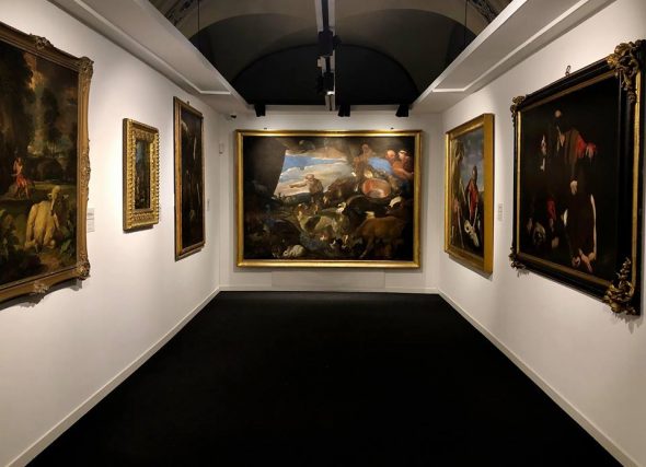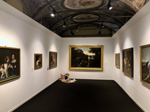 80 capolavori, provenienti da musei, pinacoteche e collezioni private ed estere, presentano il primo bestiario artistico fin’ora mai realizzato in Europa: dalle iconografie della tradizione biblica a quelle della letteratura classica greca e latina, fino alle scene di vita quotidiana, il mondo animale è sempre stato presente nella storia dell’arte, protagonista, comprimario o come figura essenziale nello svolgimento mitologico. Dieci sezioni accolgono le tele di Guercino, Ceruti, Grechetto, Campi, Bachiacca, Cavalier d’Arpino e tanti altri artisti che operarono tra XVI e XVIII secolo, offrendo la possibilità di ammirare opere inedite o mai esposte in una mostra pubblica. Si tratta, nel primo caso, del “Ritratto di gentiluomo con labrador” del fiorentino Lorenzo Lippi, della “Venere, amore e cagnolino vestito da bambina” del veneziano Pietro Liberi e del “Ritratto di ragazzino con cane” del genovese Domenico Fiasella. È invece per Giacomo Ceruti detto il Pitocchetto e la sua coppia di tele “Vecchio con carlino” e “Vecchio con gatto” la prima apparizione in un’istituzione museale pubblica. Non sono presenti solo cani, gatti, pesci, rettili o animali da fattoria, con il piano superiore di Palazzo Martinengo si viene infatti trasportati in un fantastico ambiente esotico popolato da scimmie, pappagalli, dromedari, tigri, elefanti e leoni. Attraverso le opere è curioso notare come l’animale abbia da sempre ricoperto un ruolo fondamentale nella vita dell’uomo, da fedele compagno ad alter ego dello stesso, fino ad incarnare virtù e passioni.