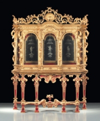 A maggio una straordinaria vetrina romana del XVIII secolo in legno scolpito, intagliato, dorato e laccato è stata venduta a 266.000 euro.