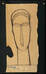 Amedeo Modigliani, Testa scultorea, matita grassa su carta, cm 43 x 19 + Lettera autografa,