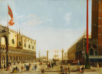 Lotto 54. Venduto per: € 517,800. Joseph Heintz II, Lo sbarco alla Piazzetta di San Marco di un Capitan da Mar, accolto dal Doge Francesco Molin, olio su tela. Record mondiale di vendita per l’artista
