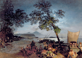 Uno dei lotti più ambiti, il Convito in una sera d’estate nella baia di Napoli di Oswald Achenbach, è stato battuto per la straordinaria cifra di 204.000 euro, prezzo mai pagato per un quadro di questo artista tedesco (secondo quanto riferisce Artnet). Il dipinto è un brillante esempio della maestria di Achenbach nel giocare con la luce e l’atmosfera: caratteristica che lo rese uno dei maggiori esponenti della scuola pittorica di Düsseldorf. Nel 1893 il dipinto fu presentato all’Esposizione universale di Chicago (lotto 29, stima 150-180 mila).