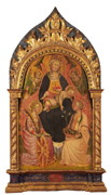 In occasione dell’asta sono state anche proposte 15 bellissime tavole a fondo oro. Degna di nota, è stata la graziosa anconetta devozionale che raffigura una Vergine che allatta il Bambino dal titolo “Madonna del latte” e che è attribuita a Maestro Della Misericordia, tempera e oro su tavola (lotto 81, cm 117×58,5 , aggiudicata per 172mila euro inclusi i diritti ). Di Giovanni Di Tano Fei, attivo a Firenze dal 1386 al terzo decennio del XV secolo, invece è stata aggiudicata per 184mila euro inclusi i diritti la “Madonna col Bambino, le sante Dorotea e Caterina di Alessandria e angeli”, tempera e oro su tavola, (lotto n. 83, cm 79×53)