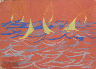 – lotto 861: Giacomo Balla, Linee forza mare, tempera su cartoncino (cartolina postale) cm 10×13,6 (1919)