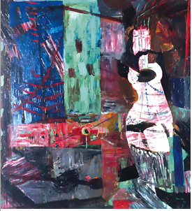 idropittura, anilina e matita su tela,