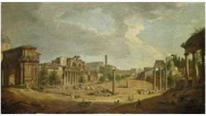 Da una collezione privata anche una magnifica veduta di Roma di Giovanni Paolo Panini, non è un capriccio ma una sorta di “fotografia” di un momento particolare del The Grand Tour: Il Foro Romano dal Clivus Capitolinus, olio su tela, 300/500.000 euro.