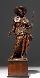 Scultura, Germania, sec. XVII, in bosso intagliato a raffigurare San Rocco nelle vesti di memento mori, su base a in legno, alt. cm 50