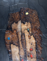 graffiti, strappi e buchi su carta assorbente applicata su tela, cm 45,5×58,5