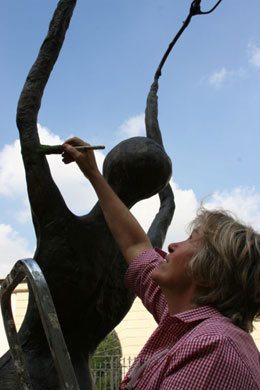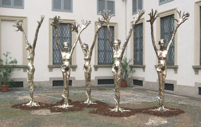 Di telefonate come queste ne feci due o tre, obbligandomi a non dire la verità, ovvero che sono fortemente prevenuta nei confronti della scultrice Angiola Tremonti che espone dal 16 settembre alla GAM di Milano. Non è che, in genere, anche per altri più noti nomi del jet-setartistico contemporaneo mi vada molto meglio; per cui, all’ennesimo rifiuto, decisi di scoprire le carte e raccontare il casus della mostra, il curriculum dell’artista (che ampiamente troverete descritto nel sito della medesima insieme a una vera e propria messe di informazioni sulla sua attività principale e financo sulle secondarie…) e la polemica nata in seguito alla conferenza stampa di presentazione dell’evento. Qualcosa intorno ai conflitti d’interesse? No, questo riguarda l’Arnaldo Pomodoro che propose una sua cancellata a Largo Mahler e la Tremonti, strenua paladina della correttezza deontologica nonché membro della già citata Commissione, ritenne fosse questione incompatibile con il fatto che l’artista vive e opera in Milano. Qualcosa intorno all’opportunità di esporre un’emerita sconosciuta e neanche granché brava in una sede storica e importante della Città? Neanche, temo che quest’argomento sia già stato speso per altre occasioni sprecate dall’ineffabile Assessorato alla Cultura della giunta Moratti.
