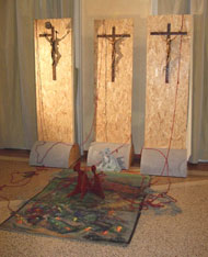 A sinistra “Donna Gatto, Africa Grande madre, Vele al fuoco (parascintille)”, a destra dalla serie “La Neve 2”
