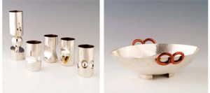 Caratterizzate da un design modernamente innovativo spiccano, fra le opere d’argenteria, un centrotavola a vasca in argento a lavorazione martellata degli anni Trenta e un set di cinque bicchieri a modellature astratte, creazione d’avanguardia di manifattura israeliana.