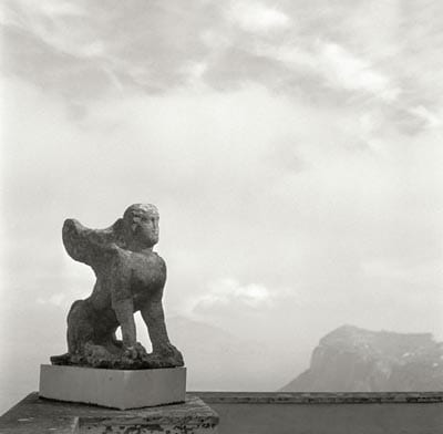 La seconda serie è realizzata con la tecnica dei mosaici. Grandi fotografie che contano anche 200 scatti in Polaroid assemblati tra loro. Qui emerge la capacità di Galimberti di restituire ritmo e fascino delle architetture e dei magnifici belvedere sparsi sull’isola.