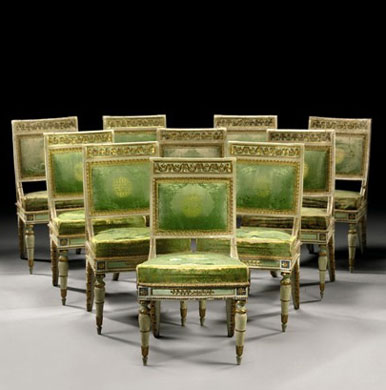 Set di sedie e divano in legno intagliato dipinto e dorato, Milano, circa 1835, aggiudicato a € 79,950