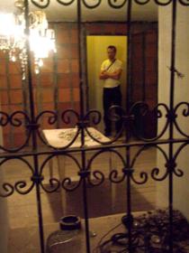 Da questa sala di colori sfocati e cordami colanti, salgo verso l’ammezzato che ospita il para-padiglione (ambiente che contiene opere di altri artisti) di Monika Sosnowska. “Antechamber” è un interno di casa piccolo borghese concepito a forma di stella, le cui pareti sono arredate da una dozzinale carta da parati. Porte si aprono per accedere in stanze costrette e astrusamente trapezoidali entro le quali trovano posto le “collezioni” dei proprietari. Molto ben concepito e in tono con il proposito del para-padiglione (io me lo terrei volentieri anche per uso futuro…).