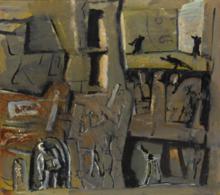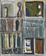 signed; signed and titled on the reverse, oil, rip and graffiti on canvas. Executed in 1962