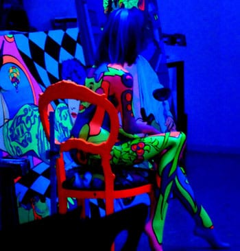 Tutto potrebbe essere. Per adesso no, anzi, devo lavorare sulla longevità del fluo, che tende a morire e a scaricare. Bisogna puntare sulla sperimentazione dei pigmenti che possono mantenere la fluorescenza per un po’ più di tempo. Sto svolgendo un lavoro di ricerca iconografica. Sono affascinato dall’art nouveau e dalla rappresentazione della natura e la sua stilizzazione avvenuta negli anni ’20 circa. Mi è capitato di andare nei templi induisti in India e ho trovato degli ornamenti davvero simili. Anche in Laos e in Cambogia, Quindi sto facendo un mix tra questi paesi e Parigi -nel periodo storico che più amo- che saranno il fondo dei miei quadri, sui quali per esempio vorrei mettere Linda Evangelista che è una delle mie modelle preferite. Darò vita ad una sorta di liberty pop. Uno stile un po’ sottovalutato, come il barocco, presentato spesso solo come vezzo estetico, quando invece credo che sia stato una delle forme d’arte più rivoluzionarie della storia. In questo mio passaggio esistenziale non credo che lascerò grandi tracce e non me ne frega nulla. Voglio godere il momento che ho qui. Quindi se i miei quadri non saranno più fluo quando sarò morto, pazienza..tutto cambia, tutto è in continua evoluzione.