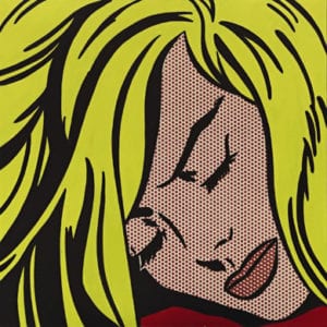 È il 1964, Roy Lichtenstein (1923-1997) – già nella scuderia di Leo Castelli da tre anni – impressiona a fumetto la sua Musa contemporanea proseguendo la celebrazione occidentale della figura della donna dormiente. Colori brillanti e tratti intensi per definire i contorni, le onde dei capelli, l’intrigo del volto, le labbra morbide a pois. Una bionda divina dalla fronte aggrottata pervasa dal mistero. Noi spettatori-voyeur avvolti in una empatica contemplazione alla ricerca di ciò che affligge la dolce fanciulla. Il potere dei sogni in un perfetto quadrato di tela (91,5×91,5 cm).