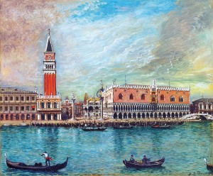 Ancora del “PICTOR OPTIMUS” una Venezia, Palazzo Ducale (stima 80/120.000), del 1956 firmato in basso a destra, un olio su tela esempio paradigmatico del periodo “barocco” dell’artista, e l’olio su tavola del 1957 firmato in basso a destra, Cavaliere fuggente (stima 20/25.000), che nell’artificio della posa sembra evocare prototipi rubensiani. Sempre del ‘57 una tecnica mista (matita e china) su cartone firmato anche lui in basso a destra che, l’emozionante titolo di Trinacria (stima 6/8.000), riporta la memoria alla Sicilia dei miti classici e cavallereschi del pupi.