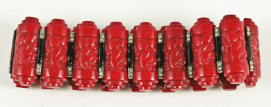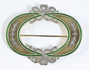 Gioielli di tutto il ‘900 con alcuni pezzi delle più prestigiose Maison da Cartier a Bulgari. Della celebre Maison francese una raffinata spilla del 1910 di forma ovale con ghirlande e nodi d’amore in oro giallo bianco smalti e diamanti (stima 12.000,00); del gioiellere milanese Frascarolo affermatosi negli anni del boom per i suoi raffinatissimi ‘animalier’ : spilla a forma di tigre in oro giallo e smalti impreziosita da diamanti e piccoli smeraldi (stima 2.500,00 ) ;e sempre degli anni 60 un anello dell’artista fiorentino Enrico Serafini, scomparso troppo presto nel 68 particolarmente aprezzato dal jet set internazionale, l’anello ispirato al tema della natura, caro all’artista , è realizzato come alghe stilizzate in oro bianco e giallo che sorreggono uno zaffiro ovale cabochon ed una perla impreziosite da diamanti (stima 2.200,00) . Per Bulgari le basi d’asta più alte per la qualità e importanza delle pietre oltre che per la fattura e design dei preziosi :al top un anello ” trombino” con un magnifico rubino cabochon di particolare bellezza per colore e caratura ( ct 10,15 )contornato da diamanti baguette (stima 80.000,00) e una spilla “Tutti i Frutti ” in oro giallo con rubini , smeraldi e zaffiri con la particolare lavorazione della Maison (stima 40.000,00). Fra i molti lotti da segnalare una elegante spilla-pendente in oro bianco e diamanti del primo 900 e una particolarissima spilla a forma di fibbia in tartaruga e diamanti inizi XX sec ; francese degli eleganti Anni Trenta un sofisticato bracciale composto da barilotti in corallo rosso scuro lavorati con motivi decò alternati da barrette in oro smalto e diamanti (Stima 4.000,00).