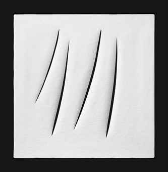 -Lucio Fontana, “Concetto spaziale”, 1960, olio, buchi, tagli e graffiti su tela, 200/300,000 euro.