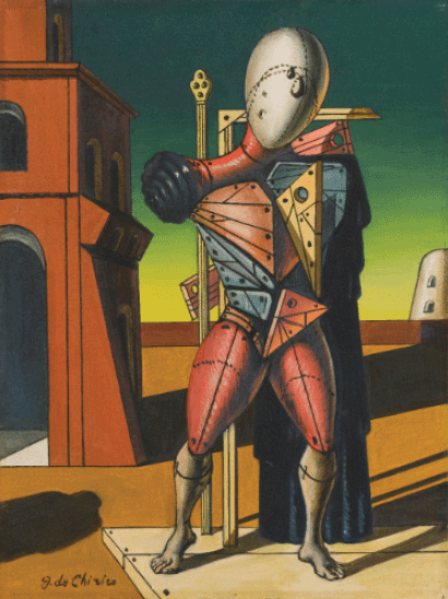 -Giorgio de Chirico, “Cavaliere in un paese”, inizio anni ’50, 60/80,000 euro.