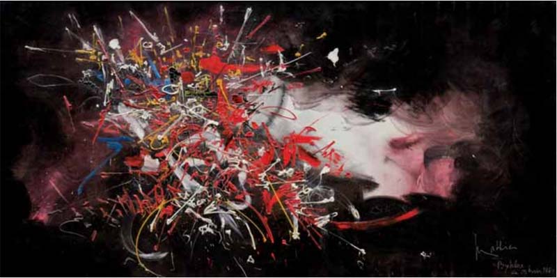 L’artista è stato uno dei fondatori dell’Astrazione Lirica degli anni Cinquanta e inventore della calligrafia spettacolare: le sue opere rivaleggiarono con i grandi artisti astratti americani della sua generazione. Mathieu dipinse spesso le sue tele in pubblico e compiendo queste perfomance viaggiò in tutto il mondo, dal Libano agli Stati Uniti, dal Brasile ai paesi asiatici.