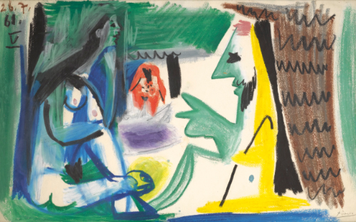 | LOT 51 Pablo Picasso (1881-1973) Nu couché et homme à la guitarre oil on canvas 31 7/8 x 39 3/8 in. (81 x 100 cm.) ESTIMATE £1,000,000 – £1,500,000 ($1,546,000 – $2,319,000)PRICE REALIZED£1,497,250 |