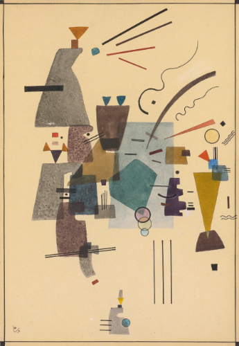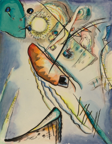 LOT 48 Wassily Kandinsky (1866-1944) Schweres zwischen Leichtem gouache, watercolour and India ink on paper laid down on the artist’s mount 13 3/8 x 19 1/8 in. (33.8 x 48.7 cm.) ESTIMATE £800,000 – £1,200,000 ($1,236,800 – $1,855,200)PRICE REALIZED £1,105,250 |