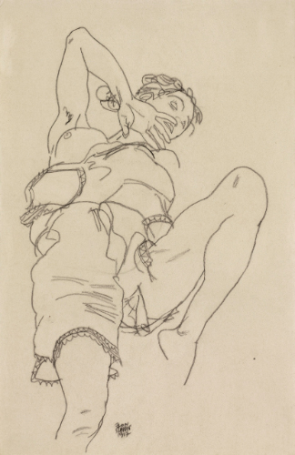 | LOT 45 Egon Schiele (1890-1918) Frau mit erhobenem Bein und lila Strümpfen gouache, watercolour and pencil on paper 17¾ x 12½ in. (45.1 x 31.7 cm.) ESTIMATE £400,000 – £600,000 ($618,400 – $927,600)PRICE REALIZED£623,650 |