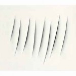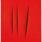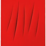 | LOT 7 Lucio Fontana (1899-1968) Concetto spaziale, Attese waterpaint on canvas 21 3/8 x 25 5/8in. (54.4 x 65.2cm.) ESTIMATE £500,000 – £700,000 ($783,500 – $1,096,900) PRICE REALIZED £1,094,050 |