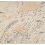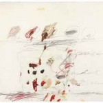 LOT 6 Cy Twombly (1928-2011) Untitled gouache and wax crayon on card 26½ x 34 3/8in. (67.4 x 87.5cm.) ESTIMATE £350,000 – £550,000 ($548,450 – $861,850) PRICE REALIZED £713,250 |
