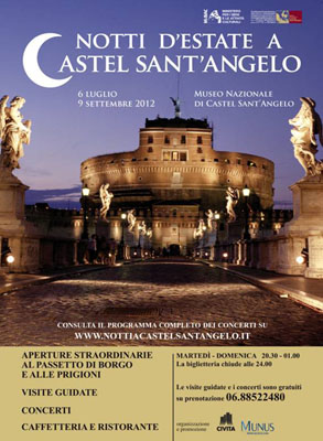 Dal 6 luglio al 9 settembre, Castel Sant’Angelo apre le sue porte, nelle calde serate estive, per consentire a romani e turisti la visita di questo straordinario monumento tanto ricco di suggestioni.