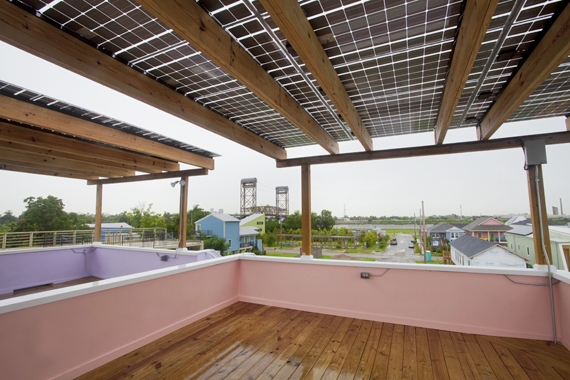 Una villetta bifamigliare progettata da Gehry è stata appena completata nella Lower 9th Ward, l’area più duramente colpita dall’uragano nel 2005. Questa volta non c’è nessuna traccia dello stile enfatico decostruttivista, che normalmente caratterizza il suo lavoro. I dettagli del design sono stati addirittura decisi dalla proprietaria della casa, che ha intenzione di tenere per sé la parte frontale e affittare l’ala posteriore dell’abitazione. Questa ha detto la sua in tutto, dalle tinte all’ebanisteria, e il risultato è stato una deliziosa villetta rosa e viola di 1780 metri quadri, completa di tetto resistente all’acqua con pannelli solari e una terrazza.