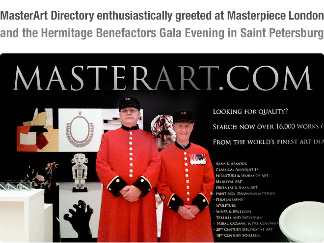 Un genuino entusiasmo è scaturito dalla prima edizione di MasterArt, distribuito in anteprima da Masterpiece London private il 26 giugno. Il design artistico 2012 Directory, presenta una panoramica di 130 high-end gallerie elencate per città e categoria comprende i dettagli di ogni galleria, specialità e una breve descrizione della collezione. Tutte le gallerie presenti sono internazionalmente riconosciute per la loro competenza e professionalità rigorosa nel commercio d’arte. Inutile dire che l’elenco dei rivenditori selezionati non è certo esaustivo, ma MasterArt spera di includere quelle gallerie che mancavano già nell’edizione del 2013.