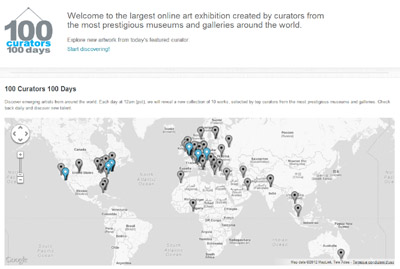 Saatchi Online presenta il primo progetto a cura di Margo Spiritus, “100 Curators in 100 days”: 100 curatori provenienti da ogni parte del mondo selezionano ognuno 10 artisti da mostrare sul sito per un intero giorno. Al progetto hanno aderito esperti dall’Hirschorn Museum, del SFMoMa di San Francisco, dal Palais de Tokyo di Parigi e dal Kunsthalle di Vienna, l’Andy Warhol Museum di Pittsburgh oltre a diversi curatori indipendenti. L’idea per l’iniziativa è partita da Rebecca Wilson, direttrice della Galleria Saatchi di Londra