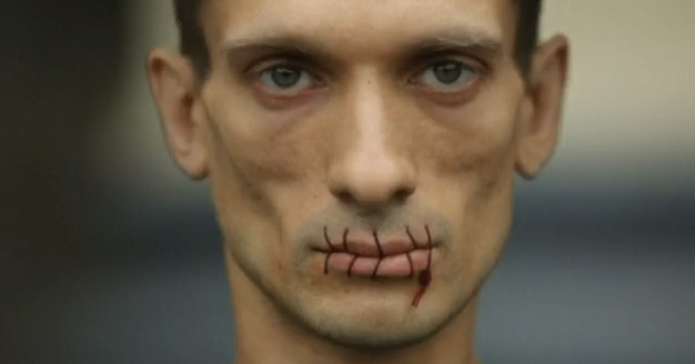 Petr Pavlensky, il 23 Luglio, ha protestato a San Pietroburgo cucendosi veramente la bocca contro l’estensione della custodia in carcere delle Pussy Riots, punk band al femminile anti Putin. Le tre ragazze rischiano fino a sette anni di reclusione e sono in cella da fine febbraio con l’accusa di vandalismo per un’irruzione a sfondo politico nella cattedrale di Mosca. Anche molte star della musica stanno appoggiando la causa, tra cui i Red Hot Chili Peppers e i Franz Ferdinand.