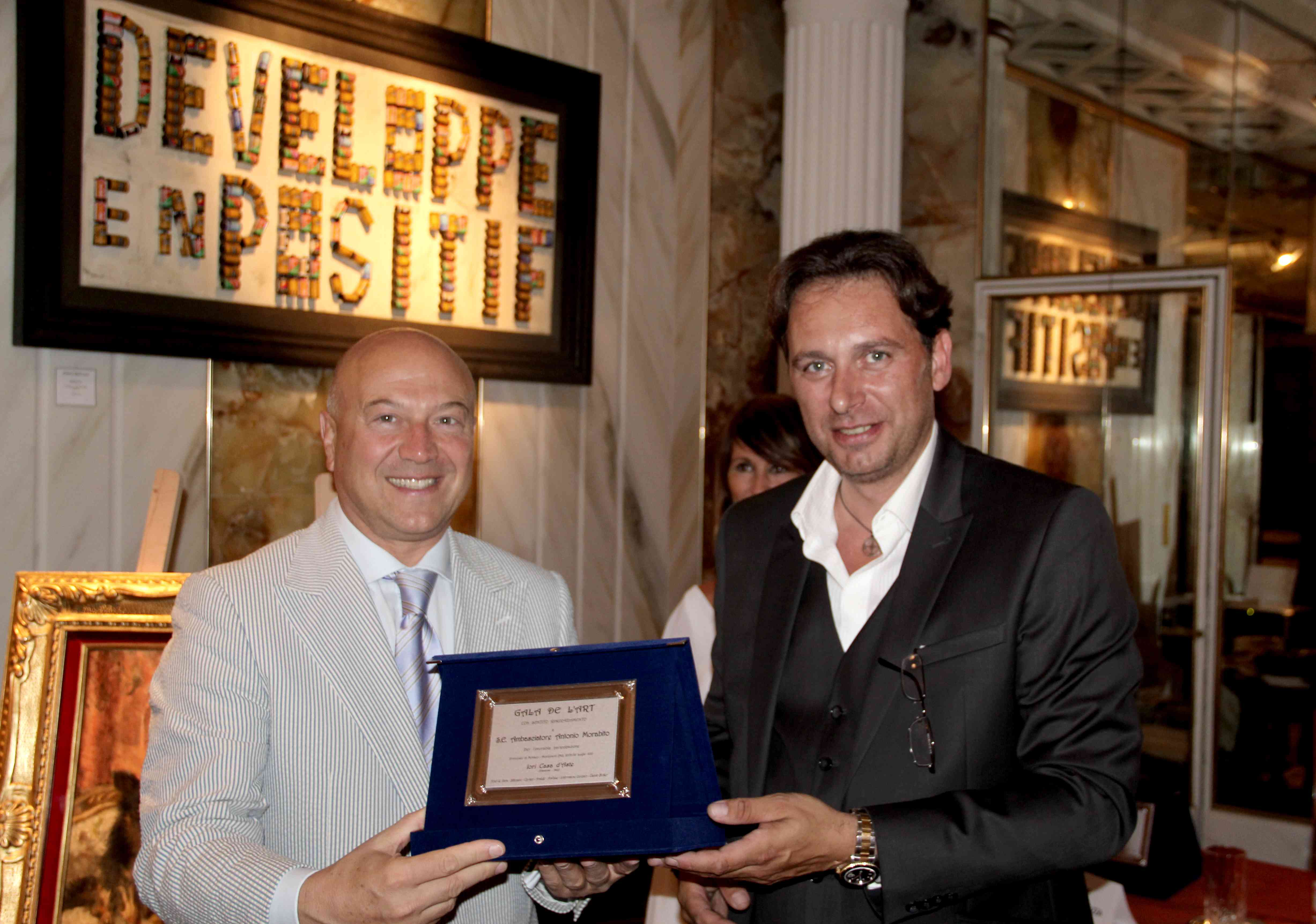 La giuria che si è espressa sulle opere in esposizione, era formata dalla Professoressa Emanuela Catalano, storico e critico d’arte, docente ordinaria di Storia dell’Arte e Catalogazione dei Beni Culturali che non ha mancato un pensiero poetico sull’evento “Ho visto l’insieme di opere di tempi diversi. L’arte deve dialogare e questo è fondamentale. L’arte non invecchia, rimane nel tempo ed è un simbolo importante, soprattutto, dell’Italia. Grazie a chi ha avuto il coraggio di organizzare un’occasione, per l’arte, come questa”. Dal Direttore del periodico bisettimanale dedicato all’arte ArtsLife e giornalista ed esperto di economia dell’arte per il Corriere della Sera Paolo Manazza che ha esordito con una frase di Fëdor Dostoevskij “La bellezza salverà il Mondo!. Quando parliamo della volontà di sviluppo del mercato dell’arte nel Principato, parliamo di un grande indotto che potrebbe aiutare le nuove generazioni di artisti italiani. Dobbiamo imparare a guardare più in la del nostro naso e, assieme agli altri, farci portavoce dei problemi etici che affliggono il momento attuale ed, in questo, l’arte è un grande insegnamento”.Da Stefano Iori della Iori Casa d’Aste, che tra sorrisi e complimenti ricevuti da parte dei presenti, ha voluto ribadire come “Questo Gala sia nato da un’idea di voler rappresentare l’Italia e la sua arte in tutto il Mondo. Questa era la cornice ideale per dare inizio ad un ciclo. La partenza è stata forte dall’Hotel de Paris e, il prossimo anno, sarà ancora più prestigiosa. Un grazie di cuore a tutti gli artisti che hanno partecipato con le opere e con il cuore”. Da Sua Eccellenza Giovanni Bruno Prefetto della città di Ventimiglia (IM) che non ha mancato un suo pensiero “Sono onorato di aver partecipato a questo evento e mi auguro che questo Gala, sia l’occasione per aprire nuovi contatti tra l’Italia e il Principato”. In fine dal Presidente di giuria, nientemeno che l’Ambasciatore d’Italia nel Principato di Monaco S.E. Antonio Morabito che si è detto “Felice di vedere nel Principato l’arte italiana. E’ stata una bella occasione perché, qui, la cultura italiana è presente, ha valore ed è un elemento costante di condivisione”.