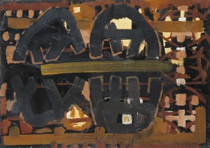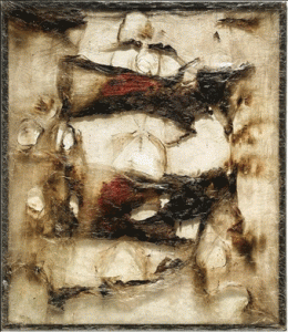 791 Alberto Burri, Catrame, 1949, olio, catrame e bianco di zinco su tavola, cm 9,8×14,5 45/55.000 54.780