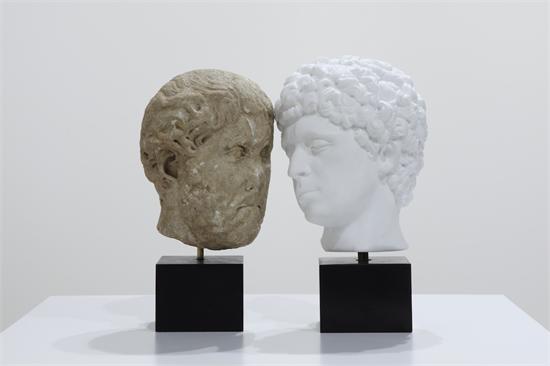 Self-portrait as Antinous Loving Emperor Hadrian, l’immagine scelta da Francesco Vezzoli come simbolo dell’Ottava Giornata del Contemporaneo, racchiude i ritratti dell’imperatore Adriano – scultura del II sec. d.C – e del giovane Antinoo – autoritratto in marmo bianco di Carrara dell’artista stesso. Adriano, dai lineamenti spianati e dal volto consumato dall’erosione dei secoli, guarda fissamente, quasi assorto, il volto ben delineato e dolcemente reclinato del bellissimo Antinoo. Una linea sottile e potente lega lo sguardo di Antinoo a quello dell’imperatore, lontano secoli nel tempo, ma vicino e vivo per l’energia con cui la storia, l’amore e l’arte ancora risuonano. Antinoo morì che non aveva vent’anni, cadendo nel sacro fiume Nilo, immolando giovinezza e bellezza al suo Adriano e diventando così una divinità. Ed ecco che ancora sono vivi, quell’amore e quel sacrificio, nell’opera di Francesco Vezzoli, che qui è totalmente contemporaneo nel gesto dell’accostare il già esistente con la propria opera – unendo con un ideale filo rosso passato e presente – ed è profondamente classico nel potere evocativo che da questo gesto sprigiona.