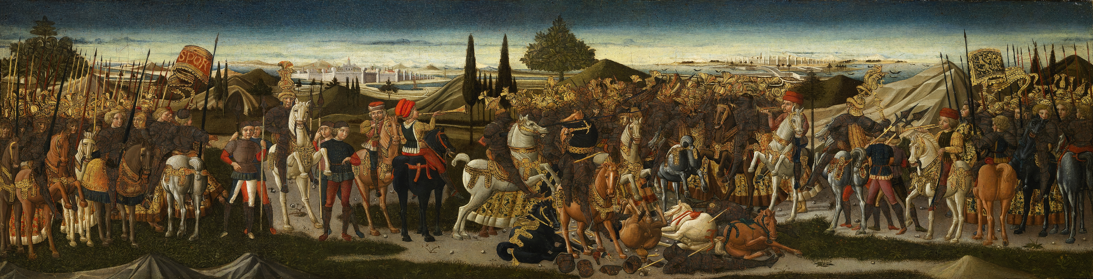 Un impressionante pannello di un cassone del 15 ° secolo sarà presentato da Moretti Fine Art presso la Biennale des Antiquaires (Stand N15) che si svolge al Grand Palais, a Parigi, da Venerdì 14 a Domenica 23 Settembre 2012. Il pannello è dipinto con una scena di battaglia e di recente pulitura ha rivelato la sua straordinaria qualità, suggerendo che il cassone è stato fatto per un nobile di standing notevole e ulteriori studi sono attualmente in corso sulla sua antica storia.