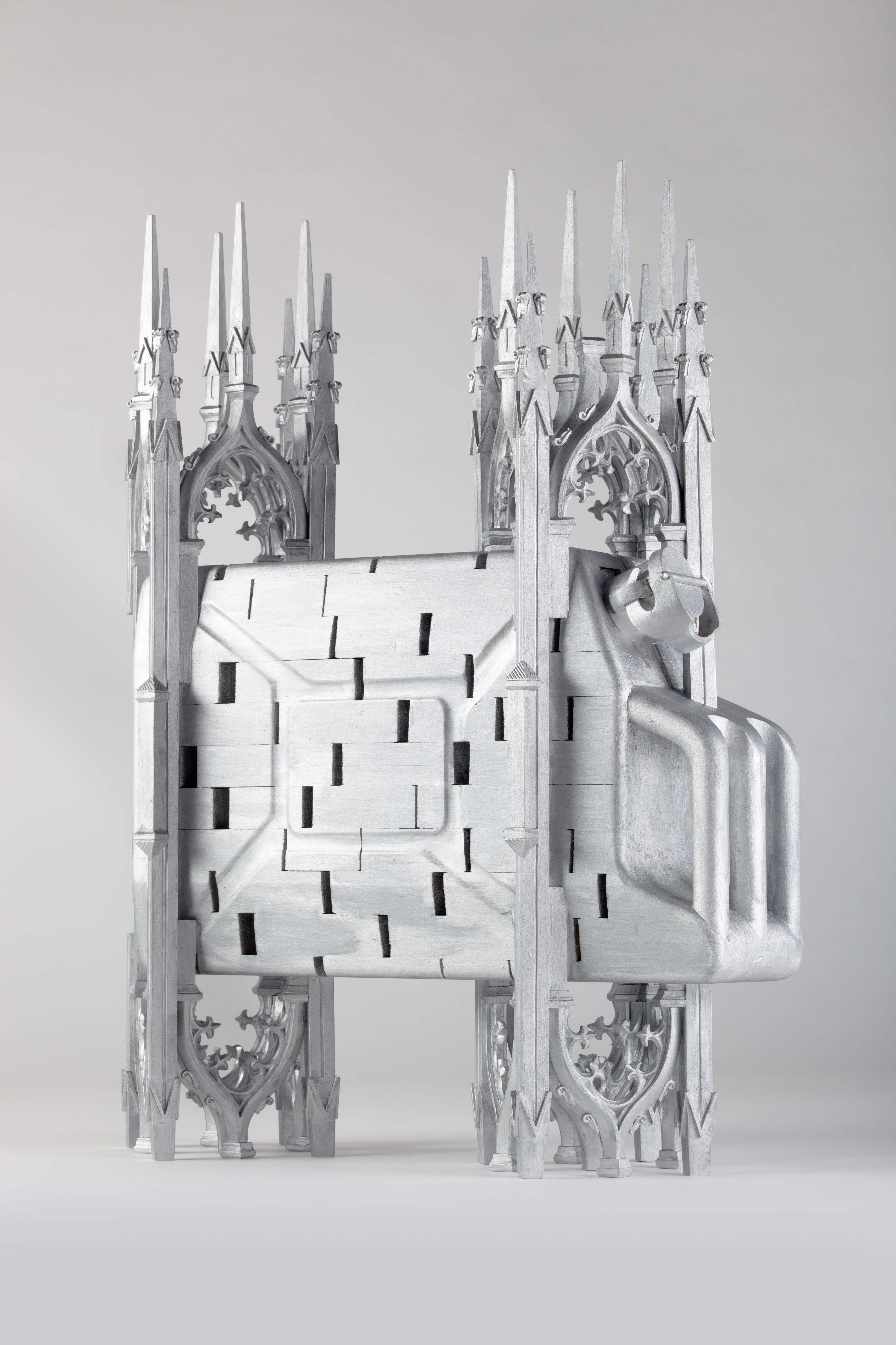 “Objekt 3” trae origine da un tabernacolo a muro arricchito di elementi decorativi gotici. Nel suo procedere verso l’alto la scultura si incurva, come se una forza magnetica fosse in grado di modificare le intenzioni originali del progettista.