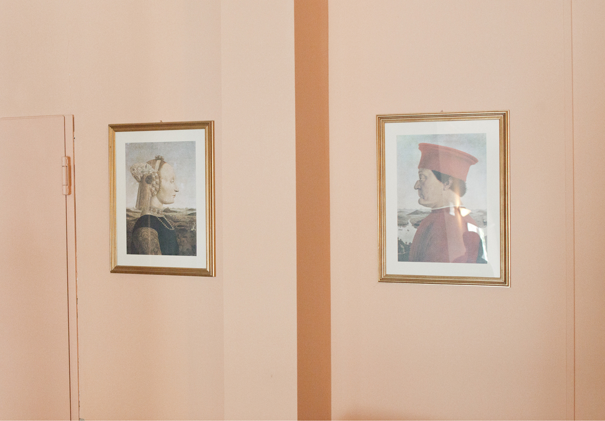 Di quella natura incontaminata e idealizzata dall’influenza umanista del tempo, Luca Capuano ricerca le tracce nel contemporaneo, verifica gli opposti e le analogie, raccoglie frammenti di immagini reali o duplicate che incontra durante i suoi percorsi indossando i panni di Federico. Un transfer che gli permette di guardare senza giudizio – ma tenendo sempre in mente il paesaggio che Piero della Francesca ha disegnato nello sfondo – spazi interstiziali, frammenti di territorio, segni antropici, volti ritratti in bianco e nero, che nel montaggio dell’allestimento assumono sensi “altri”, riuscendo a raccontare concetti inconsumabili di vita, morte, altrove.