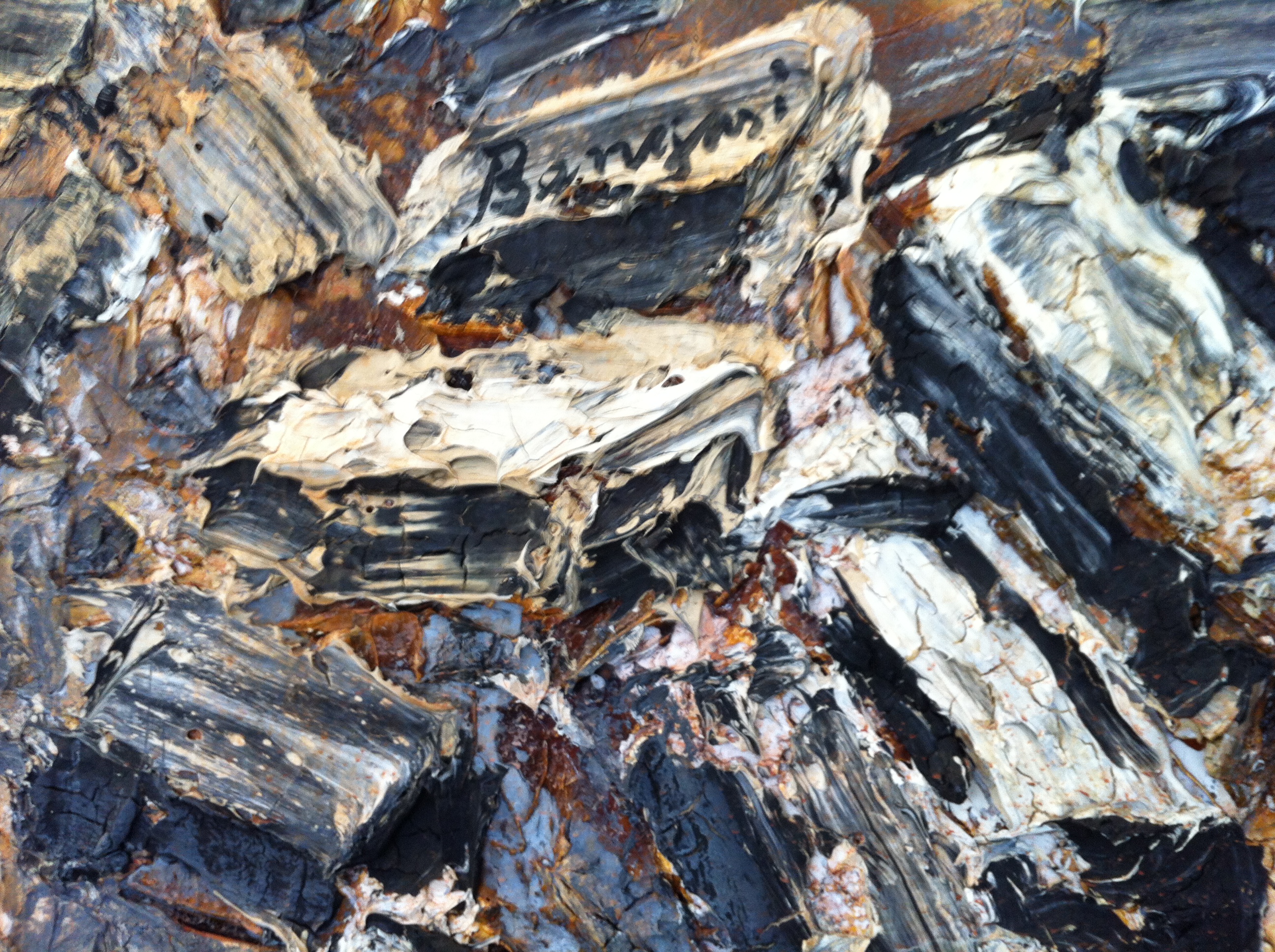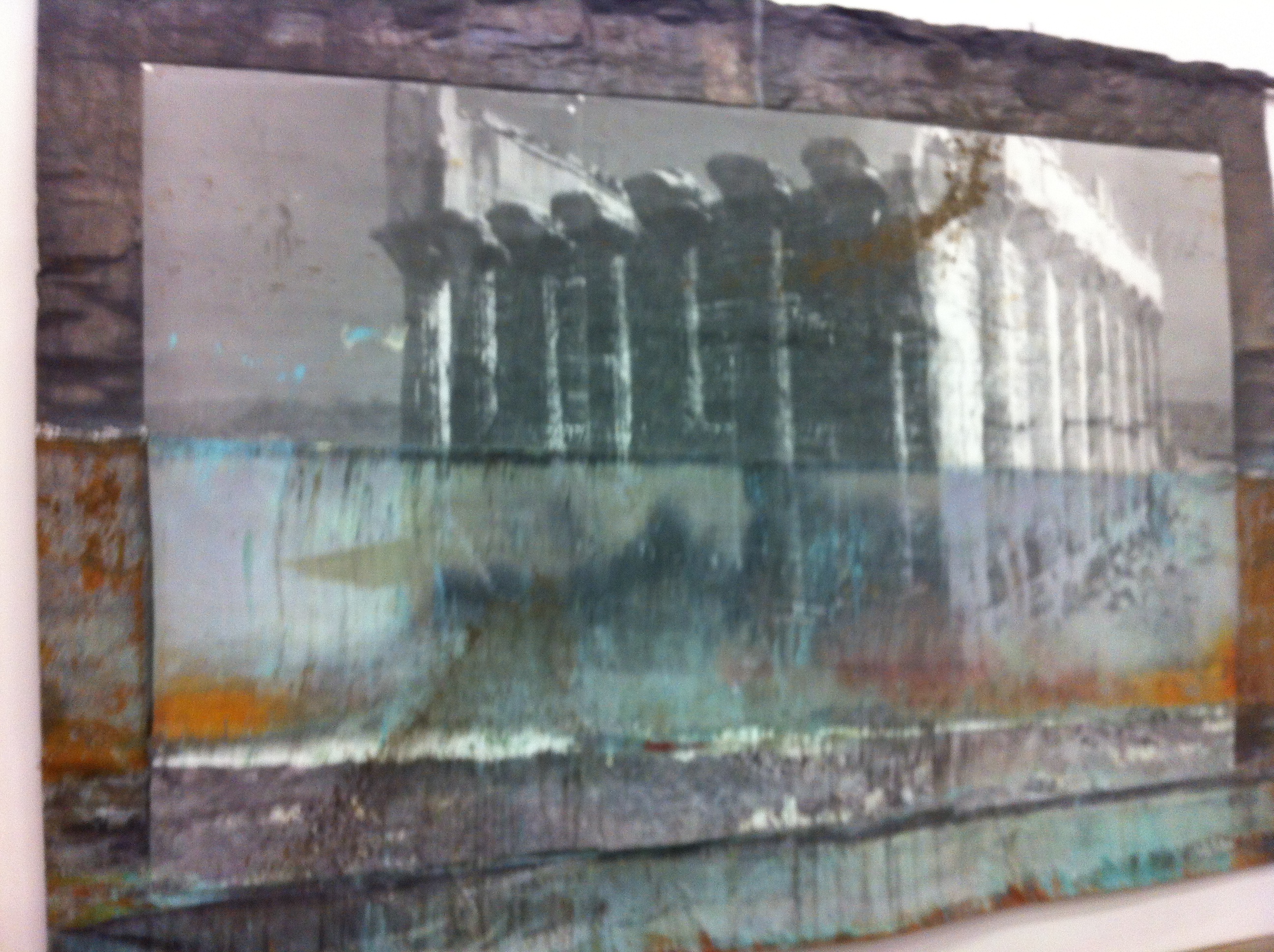 Al primo piano della bellissima galleria Lia Rumma, invece, un vero ed imponente capolavoro. Un’opera datata 2009 dal titolo “Der fruchtbare Halbmond”, quella che dà il titolo alla mostra. Materia allo stato puro che sembra essere stata appena depositata per dare vita ad un altro tempio abbandonato. Acrilico, olio, gommalacca e sabbia su tela. Un quadro immenso di più di quattro metri per otto che sembrava risucchiare gli sguardi delle persone più che ammaliarli. L’occhio rivolto verso l’opera e non per vedere chi era presente all’inaugurazione e con che abiti.