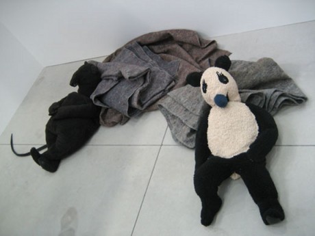 Paola Anziché presenta una serie di sculture realizzate in juta dal titolo Yurte. Contengono l’idea di un’architettura originaria e nomade, ma nello stesso tempo sono oggetti indossabili, come se la casa non fosse scindibile dal corpo che avvolge e protegge.