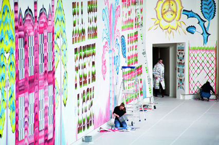 west moon street, il grande wall painting creato dall’artista Gijs Frieling in collaborazione con Job Wouters e lo stilista Dries van Noten si sviluppa negli ottanta metri di pareti dello spazioborgogno di Milano, dal 4 ottobre al 29 novembre 2012. Un originalissimo combine-painting in cui al murales si uniscono, fondendosi con la pittura, le creazioni dello stilista belga della collezione autunno-inverno 2012/13, frutto dell’intensa collaborazione con i due artisti.