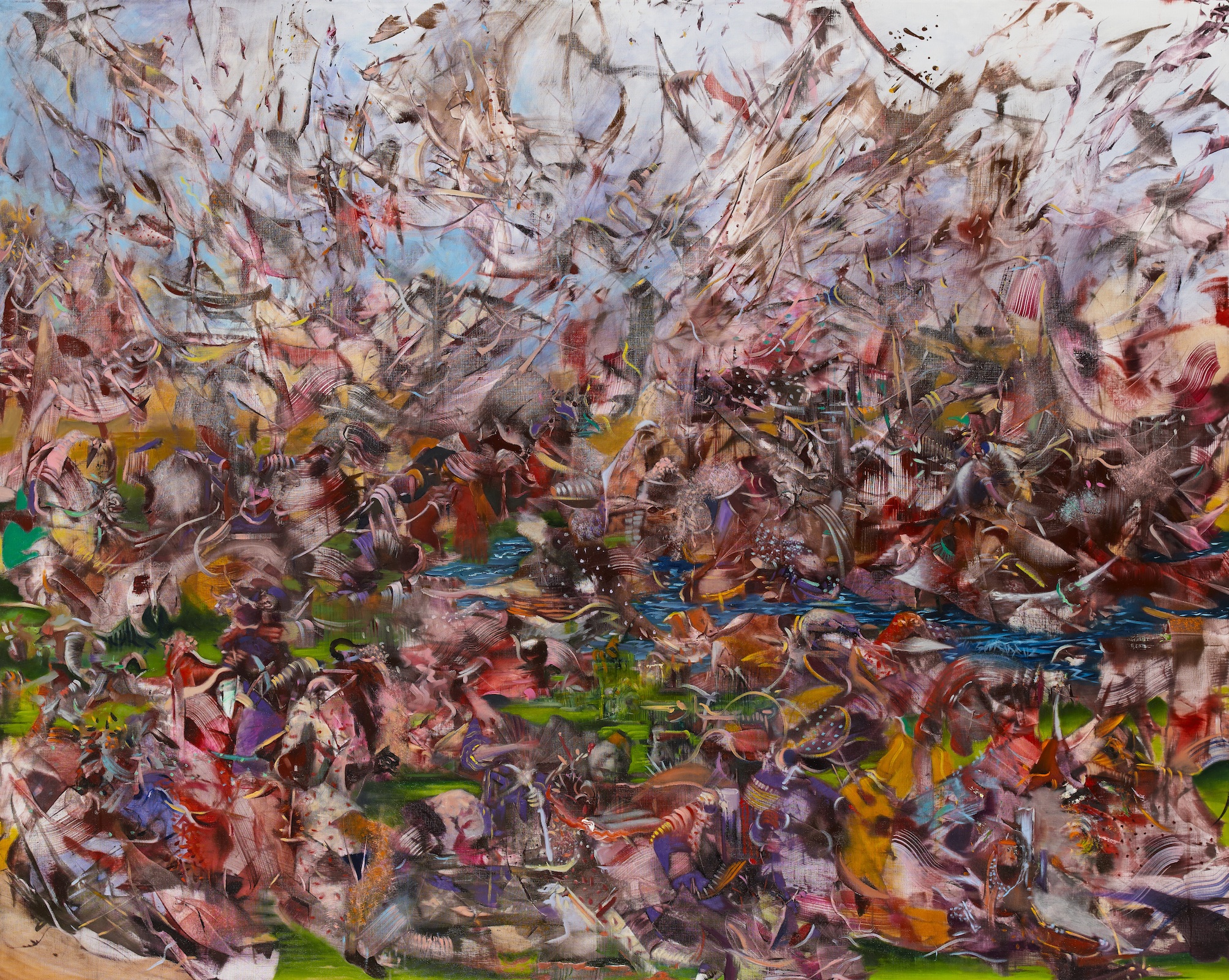 Ali Banisadr sublima la tragedia bellica della rivoluzione islamica e della contesa Iran-Iraq in atmosfere immaginarie gravide di memoria, nostalgia e caos. Il gesto dell’artista, per lo più ispirato alle antiche miniature persiane, si libera in alcune aree dall’accurata pratica figurativa celebrando con grandi pennellate danze astratte di colore. La guerra, il colonialismo, la corruzione, diventano i temi principi per un’inedita “poetica del conflitto”, elaborata attraverso un codice sinestesico che traduce il ricordo uditivo nella visione lirica di un tempo lontano, eppure perpetuo nel suo assillante rigenerarsi.