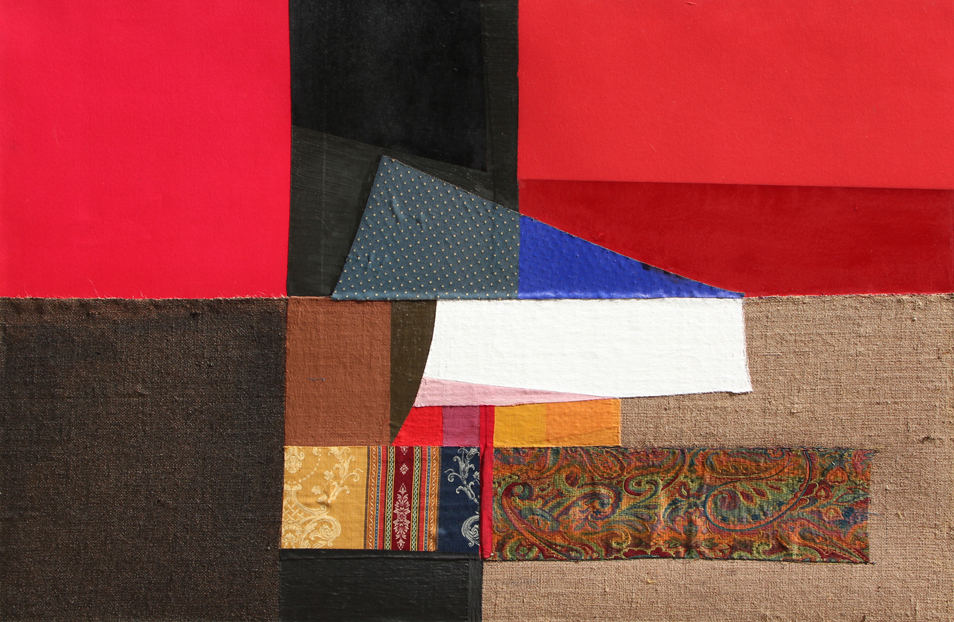 L’artista utilizza spesso tessuti, provenienti da India, Cina, la cui colorazione raggiunge pigmentazioni intense e nello stesso tempo armoniche all’interno delle composizioni.