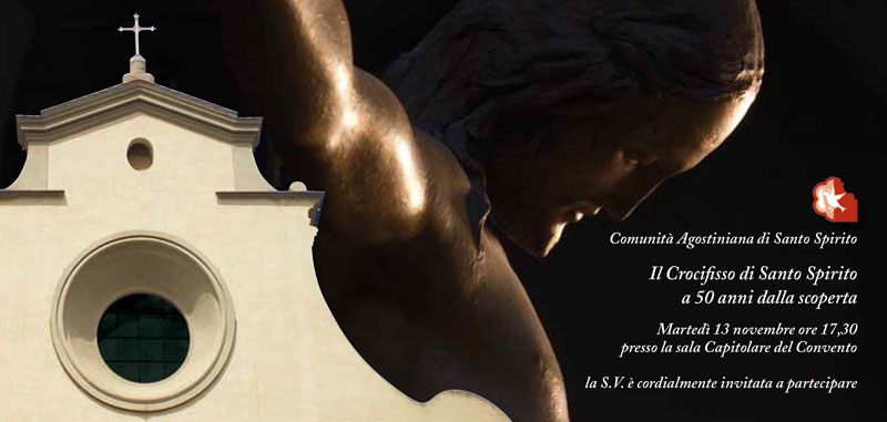 Martedì 13 novembre alle ore 17.30, presso la sala Capitolare del Convento, si terrà la conferenza su “Il Crocifisso di Santo Spirito a 50 anni dalla scoperta“.