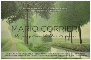 L’8 novembre 2012 alle 19,00 all’Enterprise Hotel di Milano inaugura la mostra personale di Mario Corrieri “Il respiro della natura” ed è possibile visitare l’esposizione fino al 20 novembre 2012. Protagonisti i paesaggi di campagna ispirati a spazi reali nel territorio Lombardo, che il pittore ha osservato e filtrato attraverso la propria poetica, attribuendo loro quella luce e quel particolare taglio che contraddistinguono le sue produzioni.